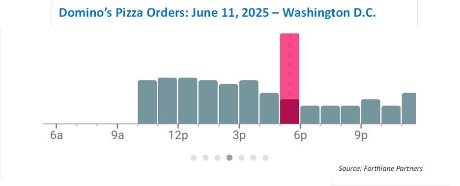 Okay, let’s finish off with our favorite chart, which we will dub “The Domino’s Pizza Indicator”. While prediction markets saw a less than 50% chance that Israel would launch an attack against Iran, the Domino’s Pizza Indicator seemed to indicate that something was afoot: