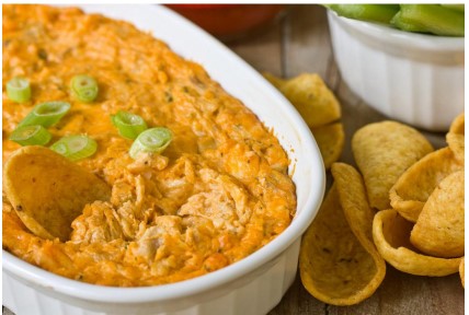 | Directions 1. Preheat oven to 350°F (175°C). 2. In a mixing bowl, combine softened cream cheese, Frank’s RedHot sauce, ranch dressing and 1/2 cup of shredded cheddar cheese. Mix until well combined. 3. Add the shredded chicken to the mixture and stir until the chicken is evenly coated. 4. Transfer the mixture to a baking dish and spread it out evenly. 5. Sprinkle the remaining 1/2 cup of shredded cheddar cheese on top of the mixture. If desired, add extra shredded cheese for an even cheesier topping. | 6. Bake in the preheated oven for 20 to 25 minutes, or until the dip is heated through and the cheese on top is melted and bubbly. 7. Remove from the oven and let it cool slightly before serving. 8. Garnish with sliced green onions if desired, and serve warm with tortilla chips, celery sticks, or your favourite dipping accompaniment. Enjoy your delicious Buffalo Chicken Dip! |