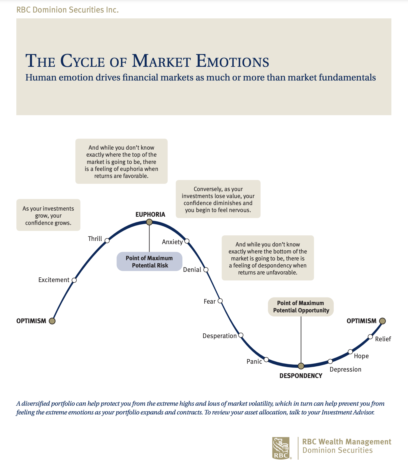 You may recall the Cycle of Market Emotions, which we have discussed in this blog in the past; please see the graph below. My view is that we are now approaching Euphoria – which as you can see, is the point of maximum potential risk.