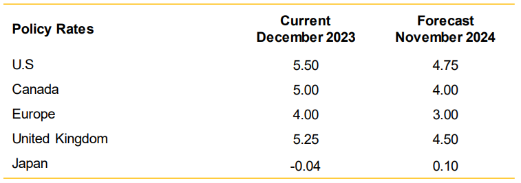 While we are less worried about the American economy for 2024, the rest of the global economy shows a poorer economic outlook.