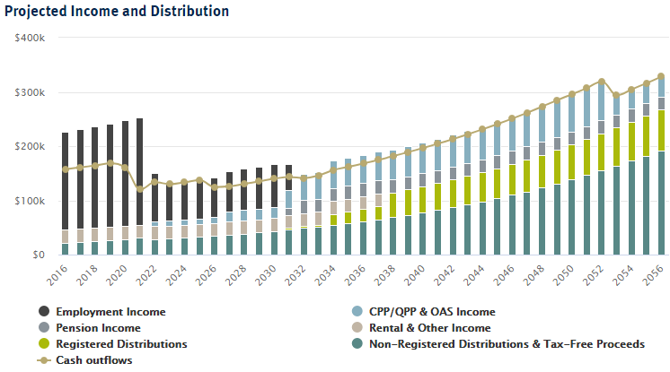 Based on the information provided, myGPSTM will project income, savings, taxes, expenses and the value of your assets into the future.