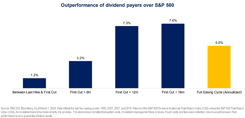 - Portfolio stalwarts such as bonds and dividend paying stocks have historically done well once rate-cutting cycles commence, while stocks in general have also performed.