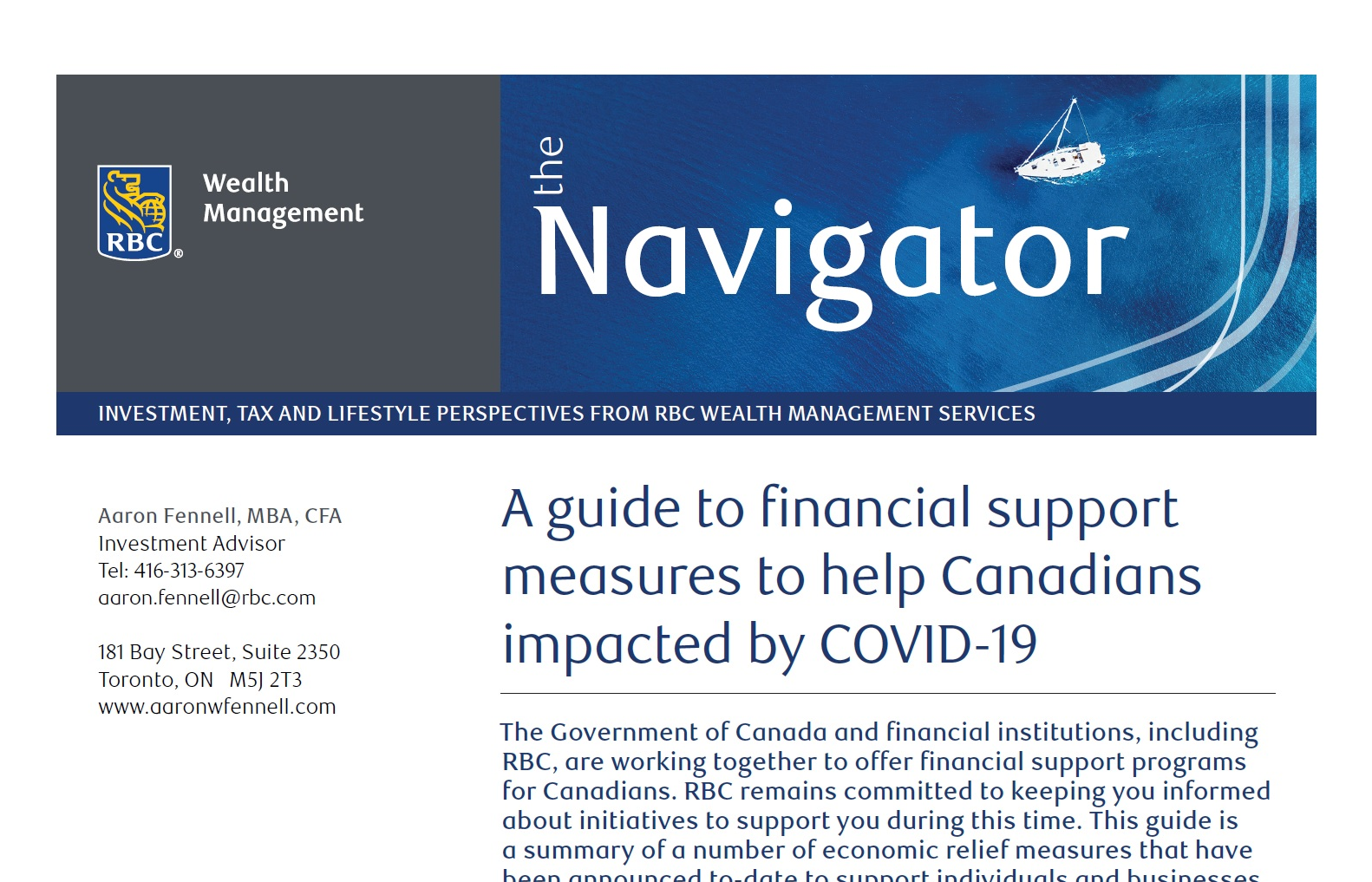 This guide is a summary of a number of economic relief measures that have been announced to-date to support individuals and businesses. The information in this guide is current as of April 30, 2020.
