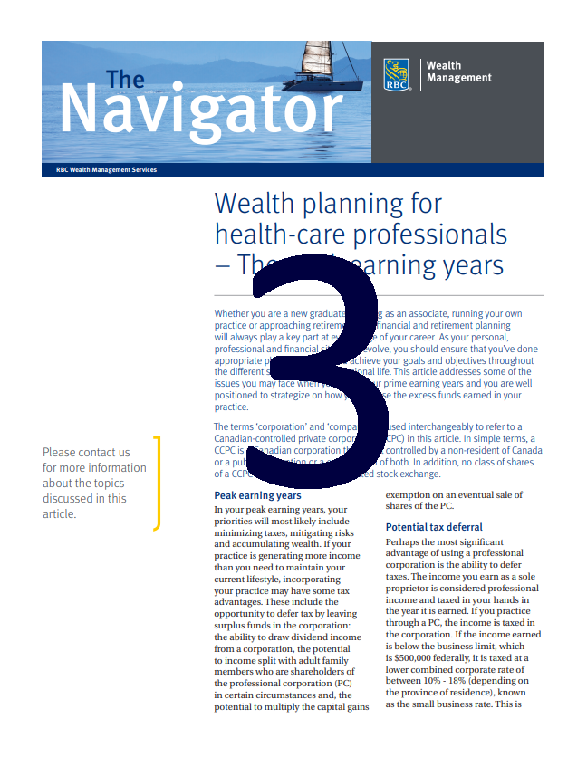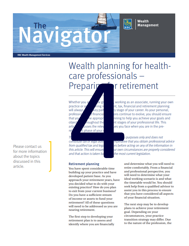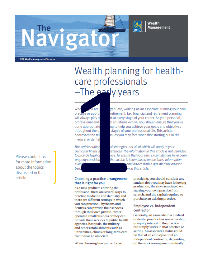 Learn about strategies to consider when you’re building and accumulating wealth, approaching retirement, selling your practice and planning for retirement. Abby Kassar, Vice President, High Net Worth Planning Services with RBC Family Office Services (formerly RBC Wealth Management Services) will also show you strategies to help you transfer wealth to the next generation tax effectively. Please click on the link below to register