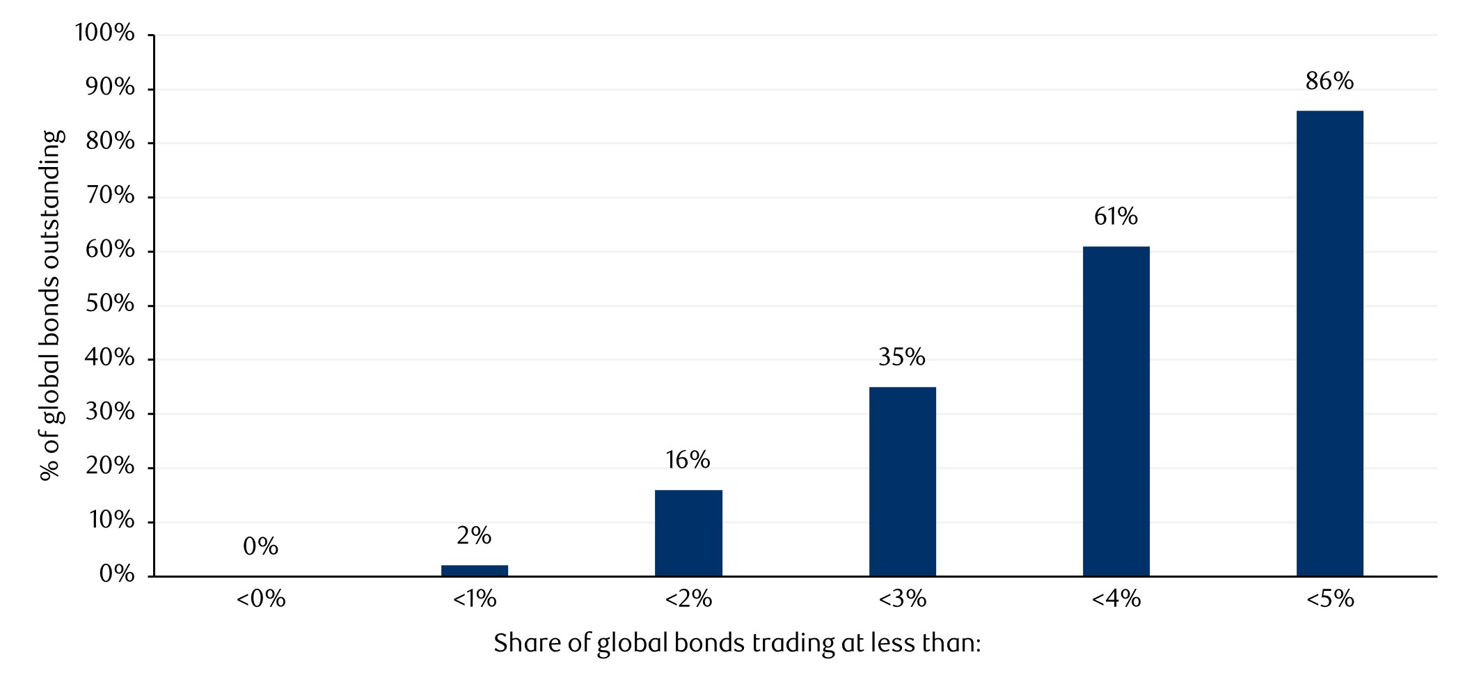 Figure 3: Almost 90% of public fixed income outstanding trades with a yield below 5%