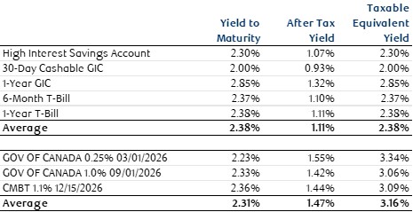 High quality corporate and government bonds trading at a discount to their par value offer a compelling after-tax return, particularly when compared to high interest savings accounts, term deposits and GICs. Discount bonds offer a portion of their return in the form of capital gains, which are tax-advantaged compared to traditional savings vehicles (where all the return is taxed as interest income).