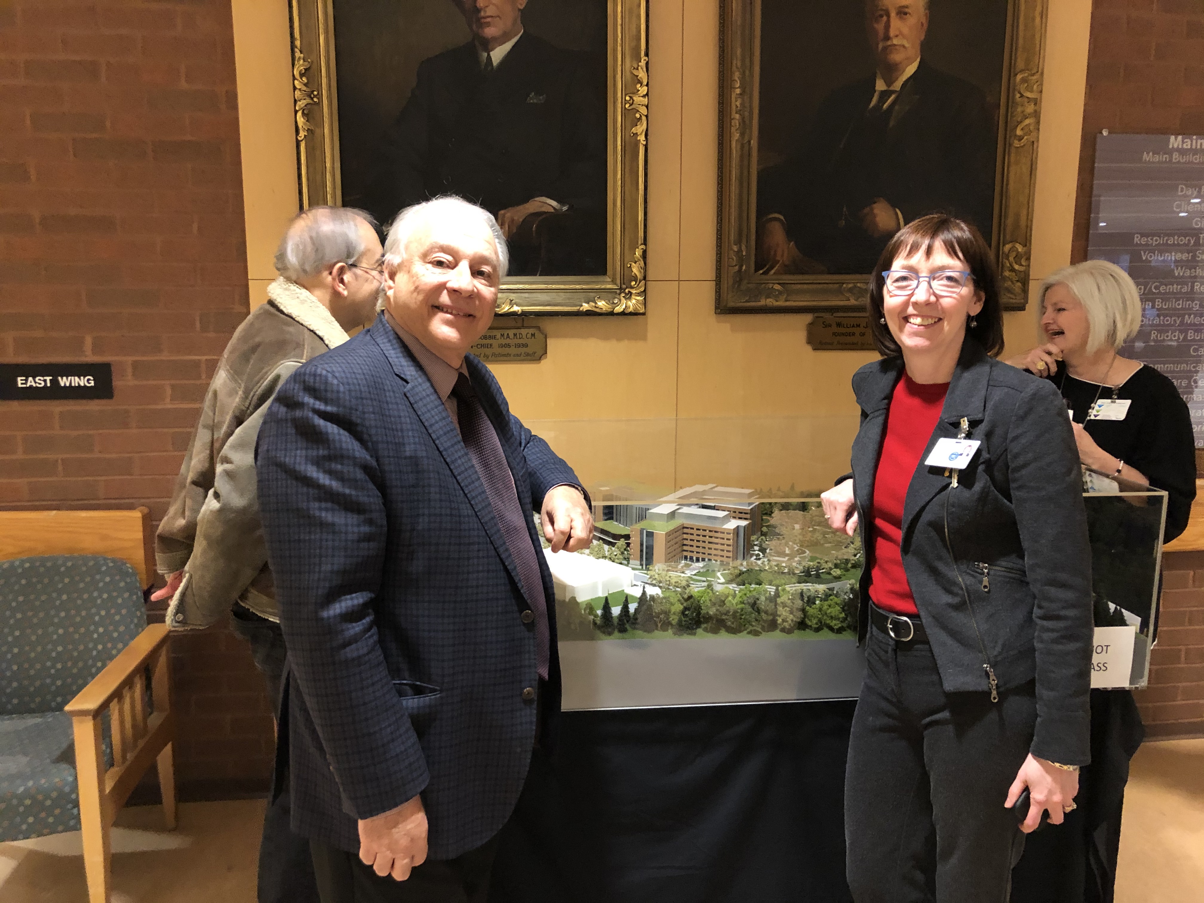 Barnaby reviews with chief planner Shelley at West Park, a model of what the new hospital will look like when it is completed mid-decade. West Park is located just off of Eglinton Avenue and helps patients get their lives back by providing specialized care to people who have suffered amputation, stroke, and lung disease. West Park is a leading provider of prosthetics, (including advanced robotics) respiratory care, and neurological rehabilitation.