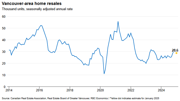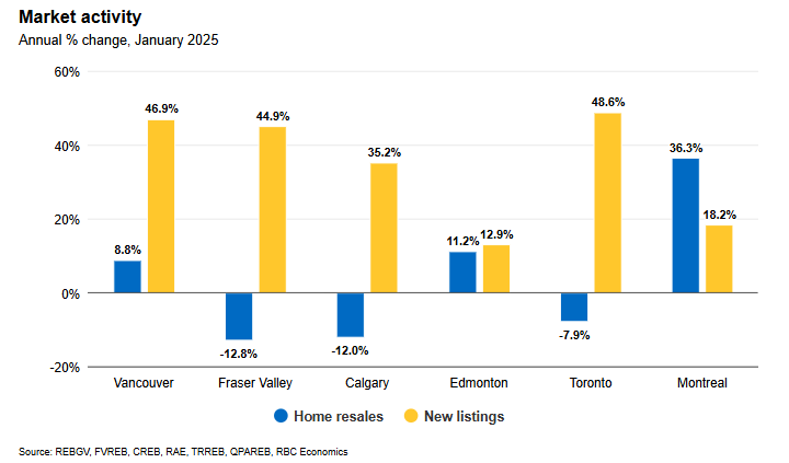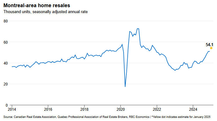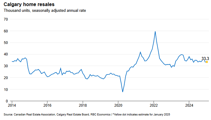 The fact that transaction activity generally rebounded in January in Toronto, Edmonton, Calgary, Montreal and Quebec City no doubt reinforces the view that the market remains in recovery mode. We expect this will be the case throughout 2025 barring a trade war ravaging Canada’s economy.