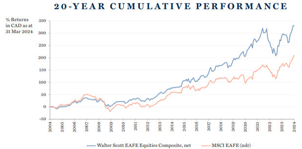 Source: Walter Scott (International Equity Factsheet (CAD), MSCI (Index). https://www.walterscott.com/strategies/