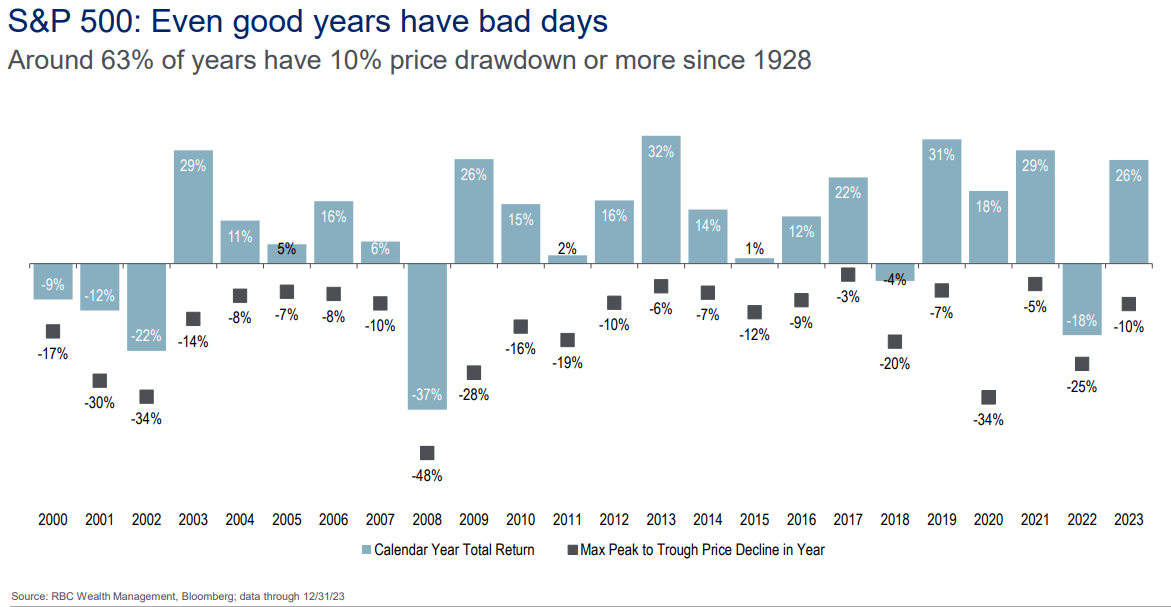 - Market selloffs like this are normal. We go through a period like this quite often, in fact most years have a 10% + market pullback at some point throughout the year. Our focus is on the long term, and ensuring we hold good quality companies that will stand the test of time.