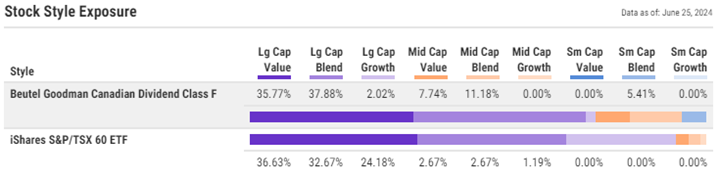 The Beutel fund did also hold up to 30% of foreign (US) stocks whereas our focus in the strategy is now limited to Canadian stocks only. This core strategy will also increase our exposure to more growth-oriented companies versus a more value-oriented tilt that Beutel has.