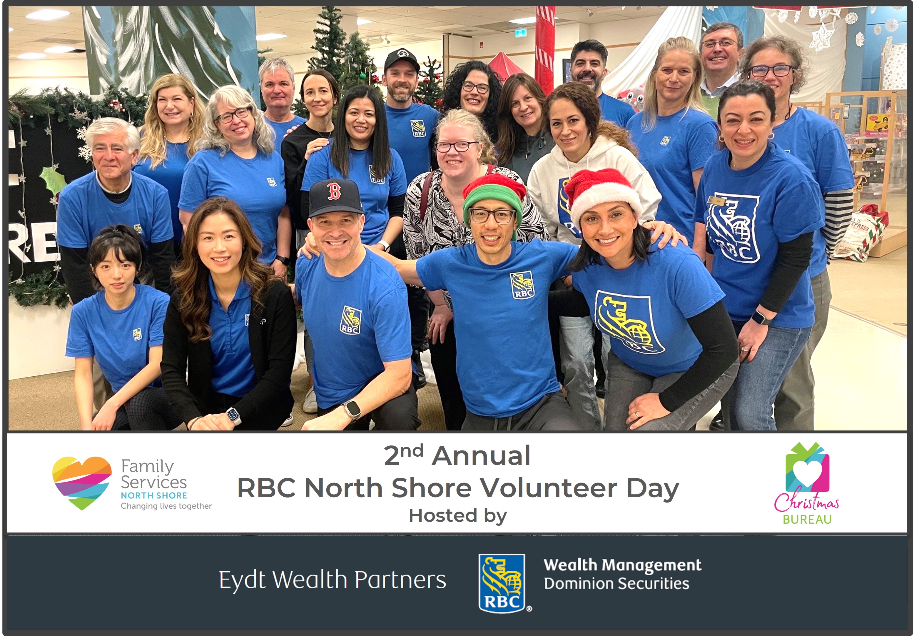 We combined this event with our annual RBC North Shore Volunteer Day at the Family Services Christmas Bureau the next day. We had over 20 RBC’ers from all lines of business help get the Community Hub space ready to receive over 1,200 gift baskets earmarked for this years many needy recipients.