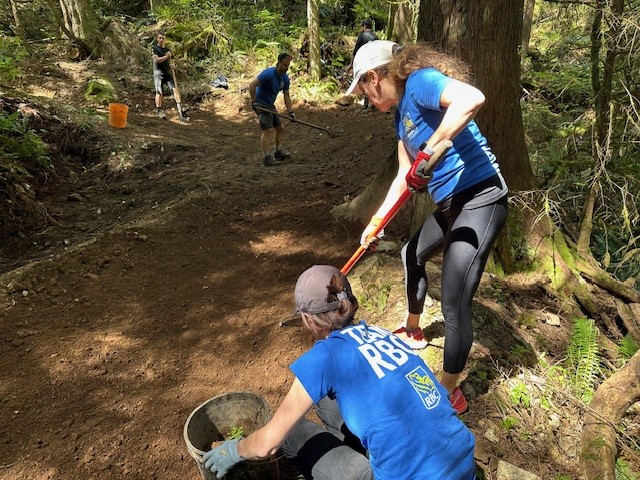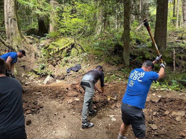 Thank you to all our partners who donated their muscle, smiles and energy to another successful Trail Day. A special thanks to Rouben, our dedicated trail builder, for guiding us. This is another RBC Communities Together Fund project where $1500 is donated to the North Shore Mountain Bike Association for our volunteer efforts.