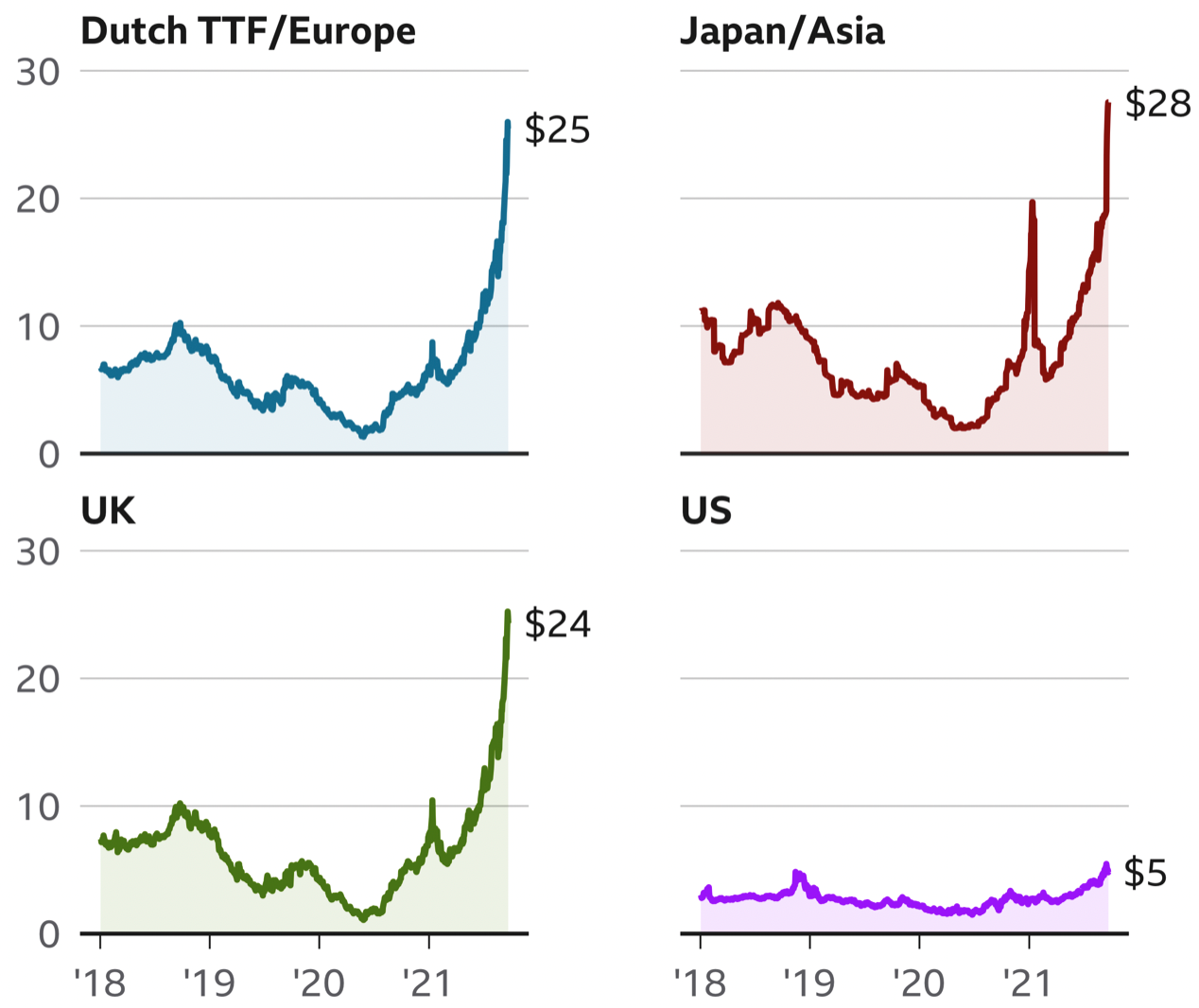 3. Less importantly, three separate energy shortages in China, the UK, and Europe have emerged – all of which are solvable, but that in the meantime have lumped another log onto the fire of inflation fears, causing interest rates to begin rising again.