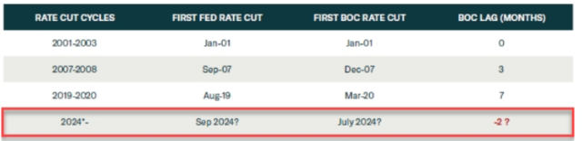 While in the past, the BoC has typically tracked or slightly lagged US rate cutting cycles, there seems to be enough evidence at this stage that Canada will dance to the beat of it's own drum. Here are some of the factors that could lead to easing in Canada sooner rather than later, regardless of what the Fed does: