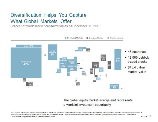 Effective diversification means more than just holding a large number of accounts or securities. It also calls for efficient, low-cost exposure to a variety of capital markets from around the globe.