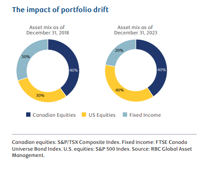Market fluctuations can often cause a shift in how your assets are divided in your portfolio (commonly known as portfolio drift), leading to a very different asset mix and an investment experience than originally intended.