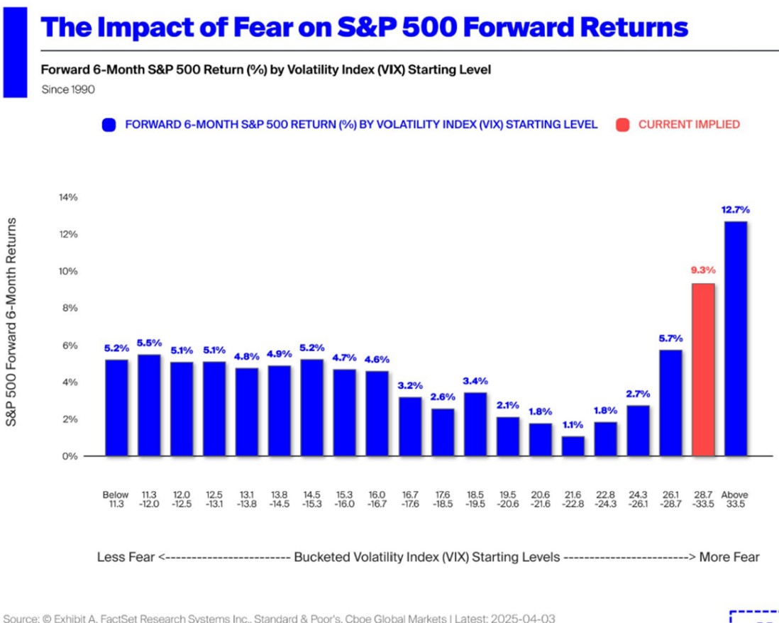 Historically, forward S&P 500 returns are strong when current volatility levels are reached. Volatility likely won’t subside soon, but there is historical evidence to remain invested (and invest more if you can).