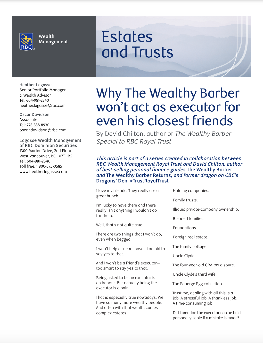 Why The Wealthy Barber won’t act as executor for even his closest friends
