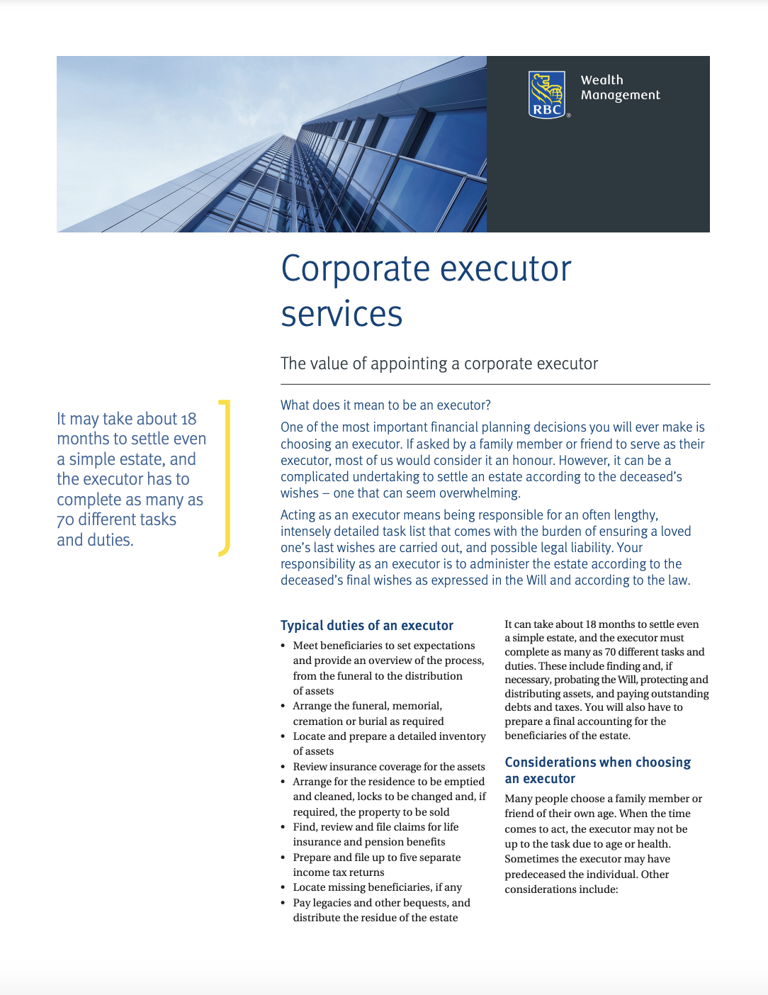 Corporate executor services