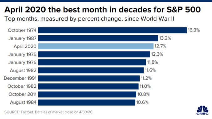 With April now in the rearview mirror, we also take a step back and look at how the markets recovered so sharply over the month. But, just as we did at the market lows in March, we remind investors not to let emotions get in the way after such a rebound. Instead, staying disciplined in the investment process, staying diversified in one’s holdings, and sticking with the investment plan is just as crucial in an upswing as it is during the depths of a crisis.