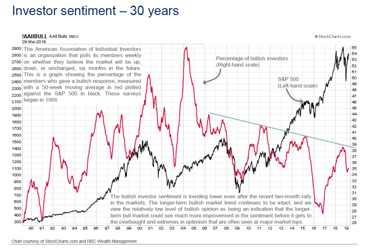 Despite a 10-year bull market, the current investor sentiment is still very skeptical. The 10-year bull market has been dubbed “the most hated bull market,” mainly because we have been climbing a “wall of worry” since the market bottomed in March 2009. Some of the concerns that have kept investors up at night over the past several years include The European Crisis (PIGS countries on the verge of bankruptcy), Brexit, trade wars, interest hikes, and slowing economies.