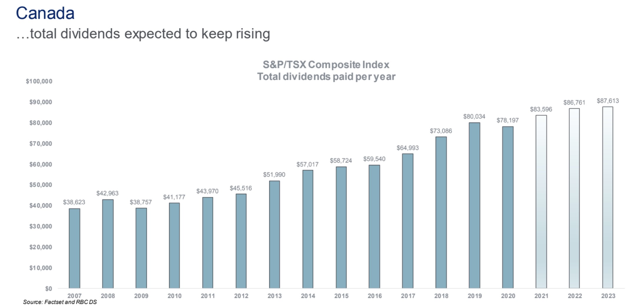 In the current low-interest rate environment, dividend-paying stocks have become an attractive investment to help beat inflation. As seen below, 2021 has been a great year for dividend-paying strategies and this performance could persist as total dividends are expected to continue growing.