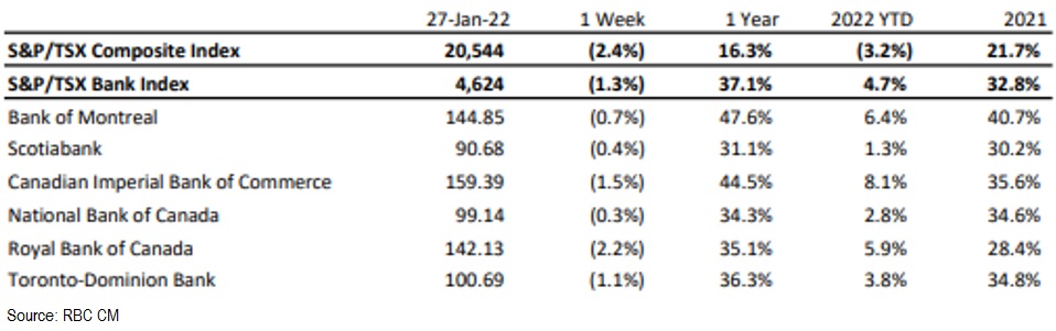 Overall 2022 should continue to be constructive for the Canadian bank sector. Still, there may be some regulatory risks ahead as the Liberal Government has proposed increased taxes for the major banks as well as a payment towards a recovery fund called the Canada Recovery Dividend. Although these measures could take hold as early as this year, RBC CM estimates the impact on earnings may only be around 3.8%. Therefore, during a year that is expected to be riddled with volatility and uncertain central bank policies, we still expect the banks to be able to provide some stability with their strong dividend, earnings growth, and fair valuations.