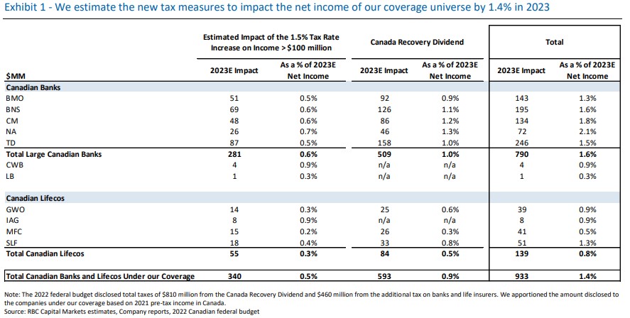 The overall tax burden does not appear to be as high as the 3% surtax that was originally proposed back in the summer of 2021. With this lower rate, the government is expecting to collect $ 460 million of taxes from the increase in tax rate and $810 million of taxes from the ‘Canada Recovery Dividend’.
