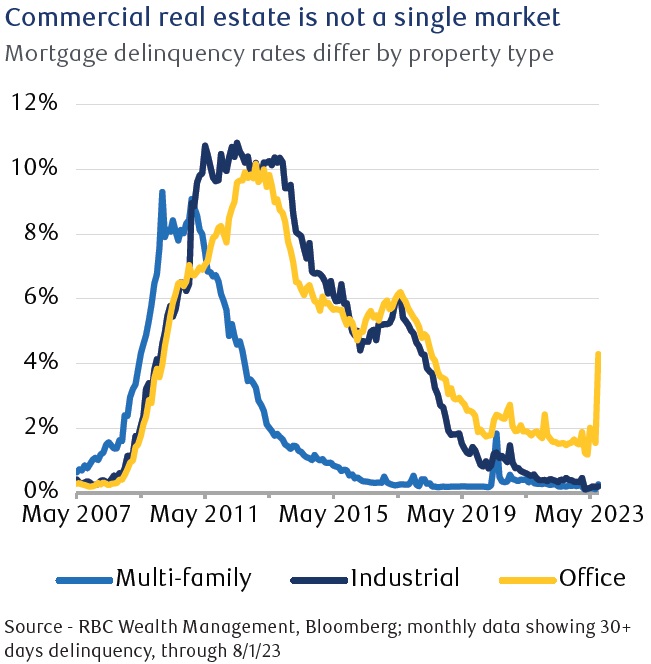 In conclusion, office spaces appear to be singing the “blues” the loudest. However, the sector's inherent diversity, market adjustments, and its relative scale within the broader economy contribute to its resilience. While there are potential risks of broader market implications, the overall outlook suggests that the CRE sector will undergo transformations while finding a way to adapt and weather these challenges. Moreover, despite the trend of remote work, the historical resilience of global cities provides a resilient lens through which to view the ongoing shifts in the CRE landscape.