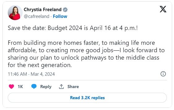 The announcement of the Federal Budget is a marquee event in the economic and political calendar. A fun and notable tradition surrounding this event is for the Finance Minister to buy a new pair of shoes before presenting the budget. The type and brand of shoe has typically symbolized the theme and overall message of the budget. In 2022, Chrystia Freeland purchased a pair of discounted black pumps, which were described as “comfortable, practical and on sale”, which reflected her comments surrounding the last budget. This year, the Finance Minister chose a pair of shoes from Maguire Shoes, a millennial owned business based in Montreal. The presumed messaging was that government was committed to address challenges faced by the younger cohort, and restore “generational fairness” for millennials and Gen Z. Her tweet on the social platform X showcased the budget’s commitment: