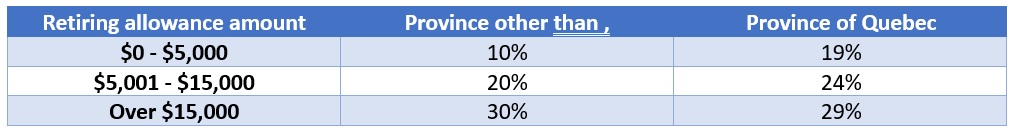 - For the non-eligible portion, your employer may be willing to contribute the gross amount of retiring allowance into your RRSP or spousal RRSP without withholding taxes. They will most likely need proof that you have available room (i.e. notice of assessment). Seek your employer to see the types of options available to you.