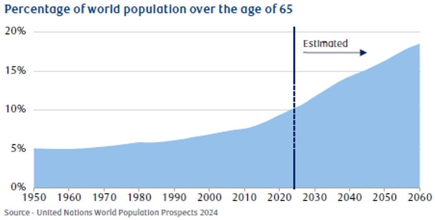 The world is aging rapidly. By 2050, 1.6 billion people are expected to be 65 or older, with those over 80 becoming a significant demographic group. This demographic shift poses challenges for healthcare systems and economies, as the financial burden of caring for non-earning individuals escalates.