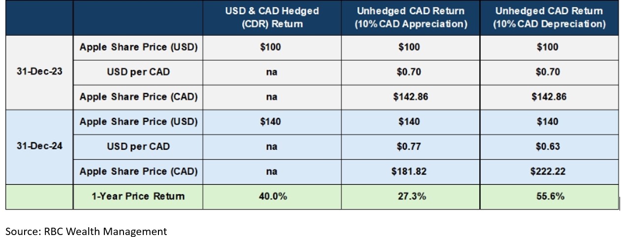 This hedge reduces the influence of currency fluctuations on returns. When the Canadian dollar strengthens, it helps offset potential losses in foreign holdings; when it weakens, however, investors won’t participate in the currency-related upside.