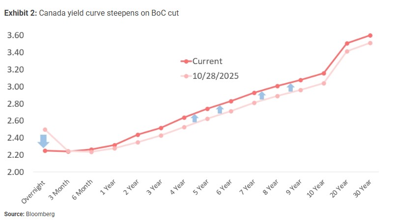 Those consumers looking at longer term fixed rates (like a 5 year mortgage on a new home or a renewal), likely won't see any impact or movement at all. The longer end of the curve, which is set by the market (and expectations around longer term borrowing costs) has not moved much of late, and will likely not budge much after this. In fact, after the cut yesterday, the long end of the curve moved UP 9-12 basis points.