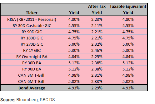 - purchase a 1 year GIC paying 5.30%. At maturity, you collect 5.30% on your money, but once the tax-man is done with it, your total yield is 2.46%