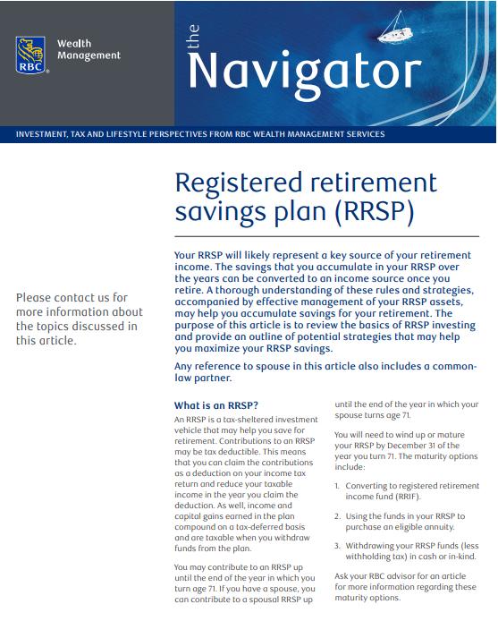 Your RRSP will likely represent a key source of your retirement income. The savings that you accumulate in your RRSP over the years can be converted to an income source once you retire. A thorough understanding of these rules and strategies, accompanied by effective management of your RRSP assets, may help you accumulate savings for your retirement. The purpose of this article is to review the basics of RRSP investing and provide an outline of potential strategies that may help you maximize your RRSP savings.