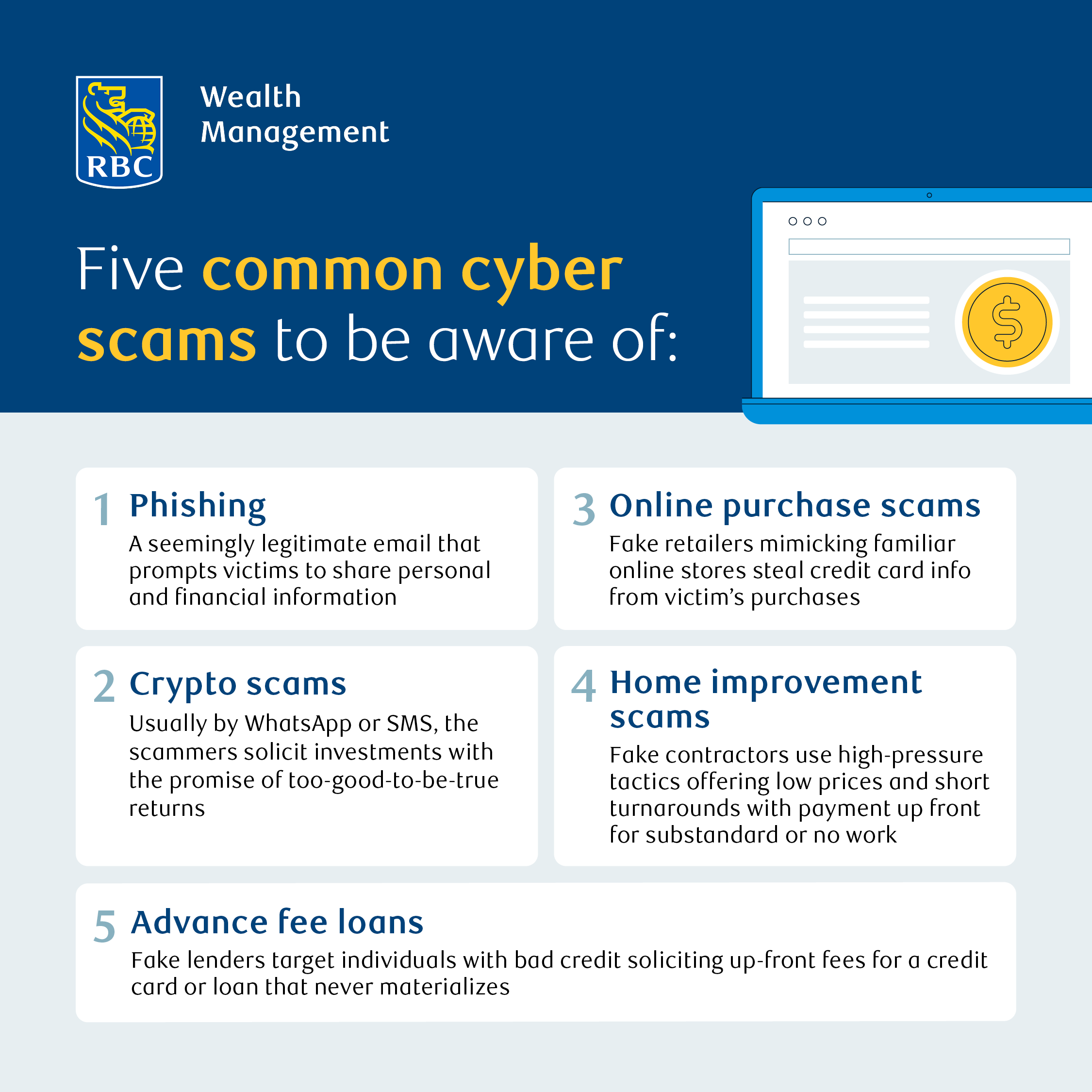 In today's digital age, safeguarding your personal and financial information against cyber threats in paramount. This March, marks the 20th anniversary of Fraud Prevention month in Canada. In the past decade, technology has completely transformed the criminal landscape, making fraud easier to commit, more widespread, and more sophisticated than ever before. And while none of the most "lucrative" types of fraud are particularly new concepts, changes to the way Canadians spend their time and new methods of deliver have made us more susceptible to certain types of fraud. Below are the five most common types of cyber scams. If you have any questions about your security, please let us know.