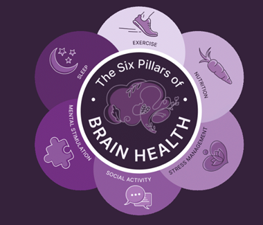 At Hayes Vickers Private Wealth, we believe mental wellness is foundation to a strong legacy. That's why we continue to support initiatives like the Women's Brain Health Initiative (IBHI) which promotes brain health for women, caregivers and their families. Building and maintaining habits of the six pillars below are an important form of self-care.