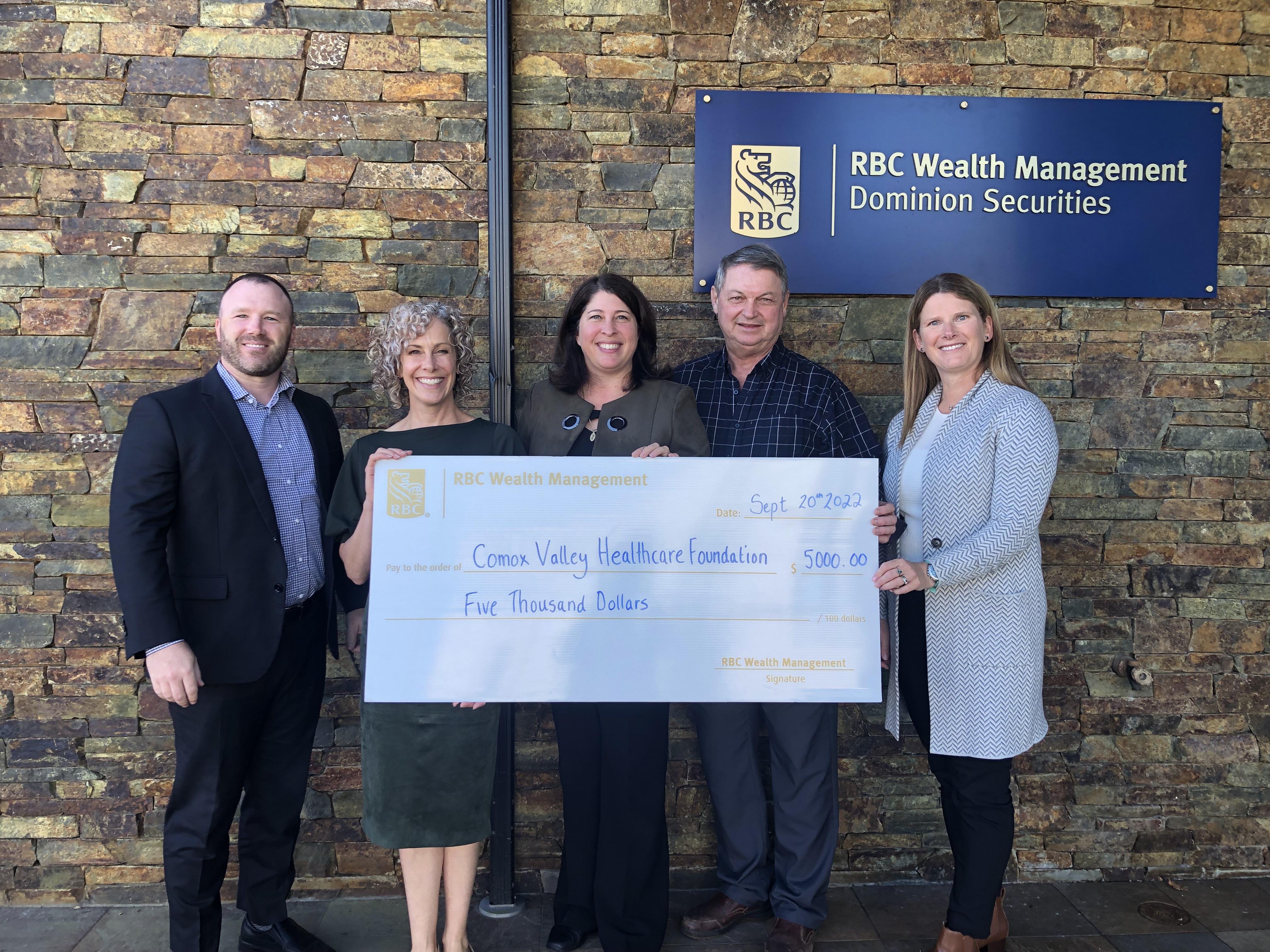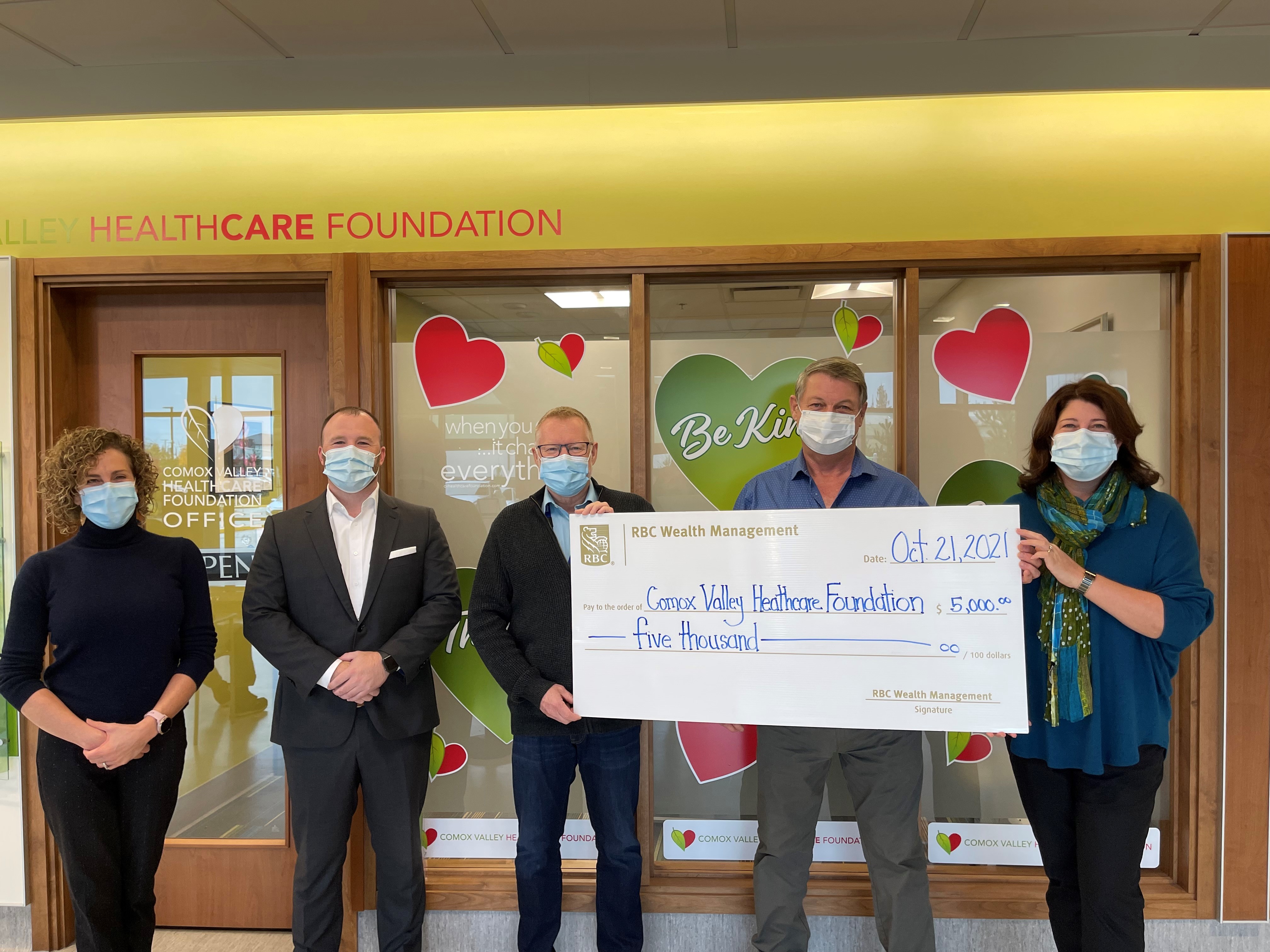 RBC Wealth Management recently donated $5,000 to the Comox Valley Healthcare Foundation, a local non-profit that raises funds for acute care at the hospital, community healthcare, and not-for-profit long-term care. The donors directed their gifts to a variety of local healthcare priorities including medical imaging, urology, cardiac care, cancer care, mental health, long-term care, and the area of greatest need at the hospital. What a showing of care and generosity!