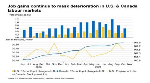 “The U.S. labour market, on the other hand, has remained firm, supported by resilient economic growth. We look for U.S. payroll employment to bounce back 157,000 in November after a 12,000 increase in October. “