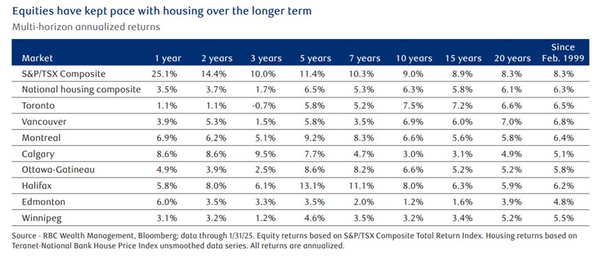 Equity Markets Versus Canadian Real Estate: (See chart below and full story here: Download Publication: Houses and Stocks)