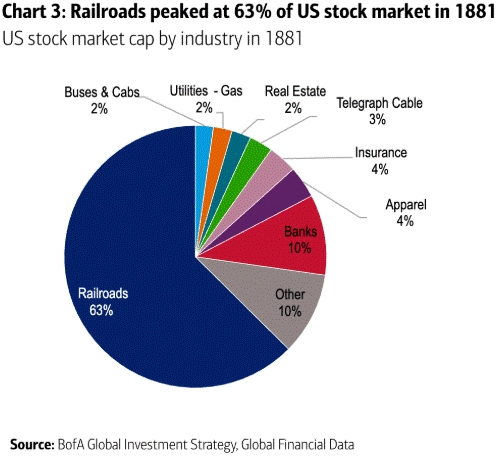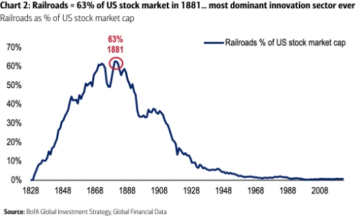 Railroads were the most dominant innovation sector in the USA ever (see charts below):
