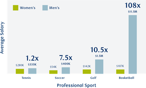 On average, professional men athletes earn 21 times more than professional women athletes. The disparity in pay is based on gender results from longstanding inequities in sports, stemming from issues such as funding, systemic infrastructure and coverage by the media.