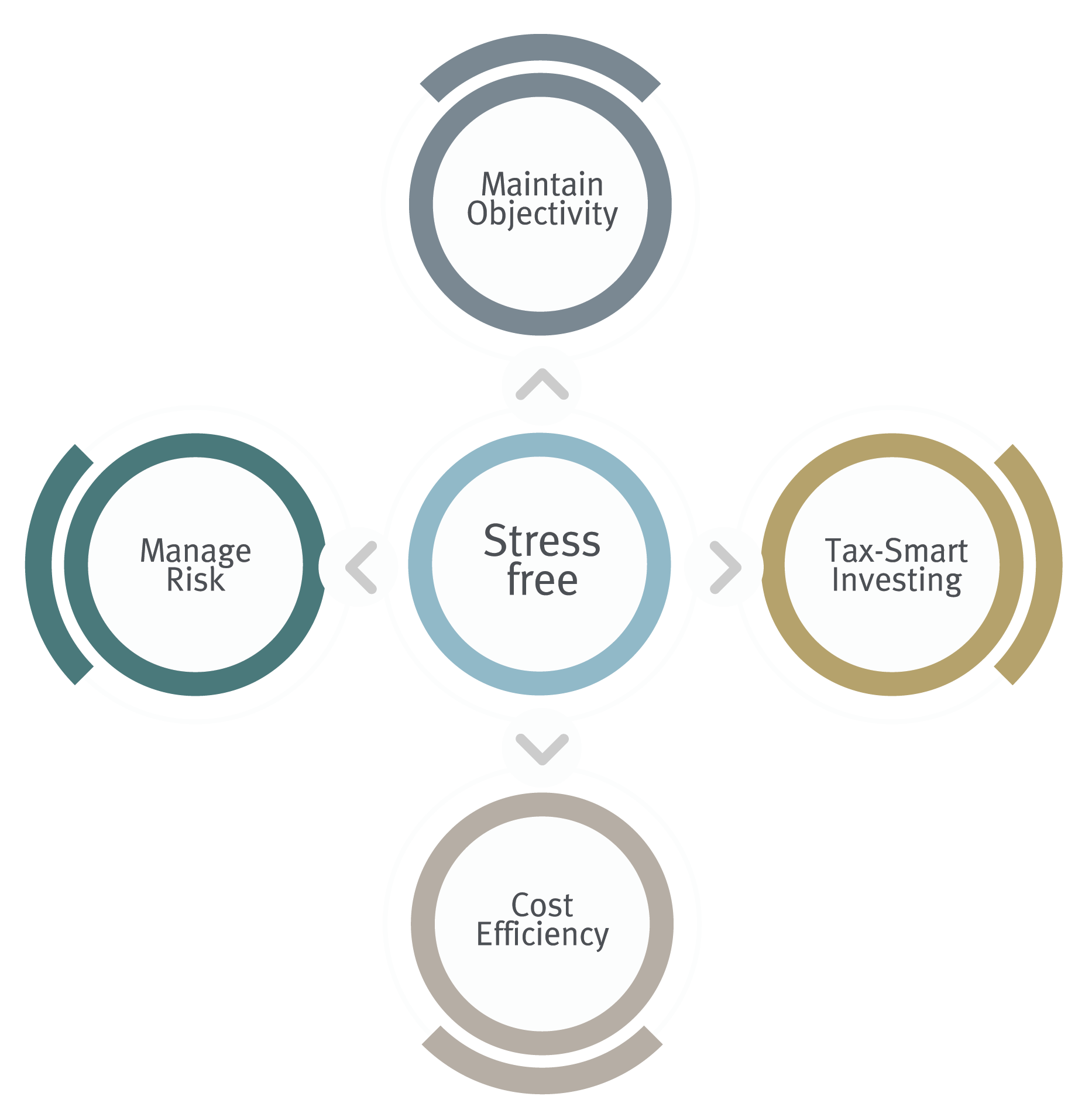 | Stress-free A key to financial success is less stress! Your investment portfolio should not keep you up at night. When approached thoughtfully and constructed intelligently, it should provide you a stress-free experience while growing and preserving your wealth. - As mentioned above under risk management, the key to long-term investment success is remaining invested in the markets. It's the power of compounding and exponential growth. When your portfolio is tailored and personalized for you, it should deliver a stress-free experience that will provide you with investment longevity and the benefits of compound growth.