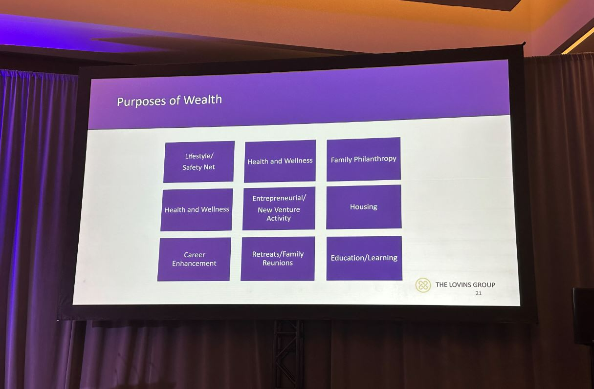 Deepening client conversations with Ruth Steverlynck of The Lovins Group. Wealth transfer was one of them, and the purpose of this transfer. Consider these points: Lifestyle/Safety Net, Health and Wellness, Career Enhancement, Entrepreneurial/New Venture...
