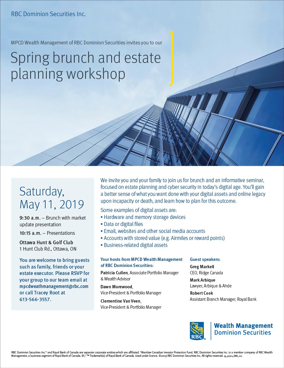 We invite our clients and their family to join us for brunch and an informative seminar focused on estate planning and cyber security in today’s digital age. See our official invitation below for more details!