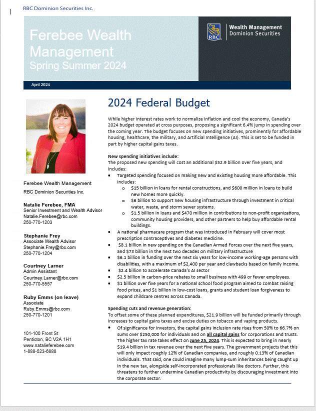 Be sure to check out our latest newsletter for the most up to date information on the 2024 Federal Budget, Financial planning for older Canadian and our newest team member.