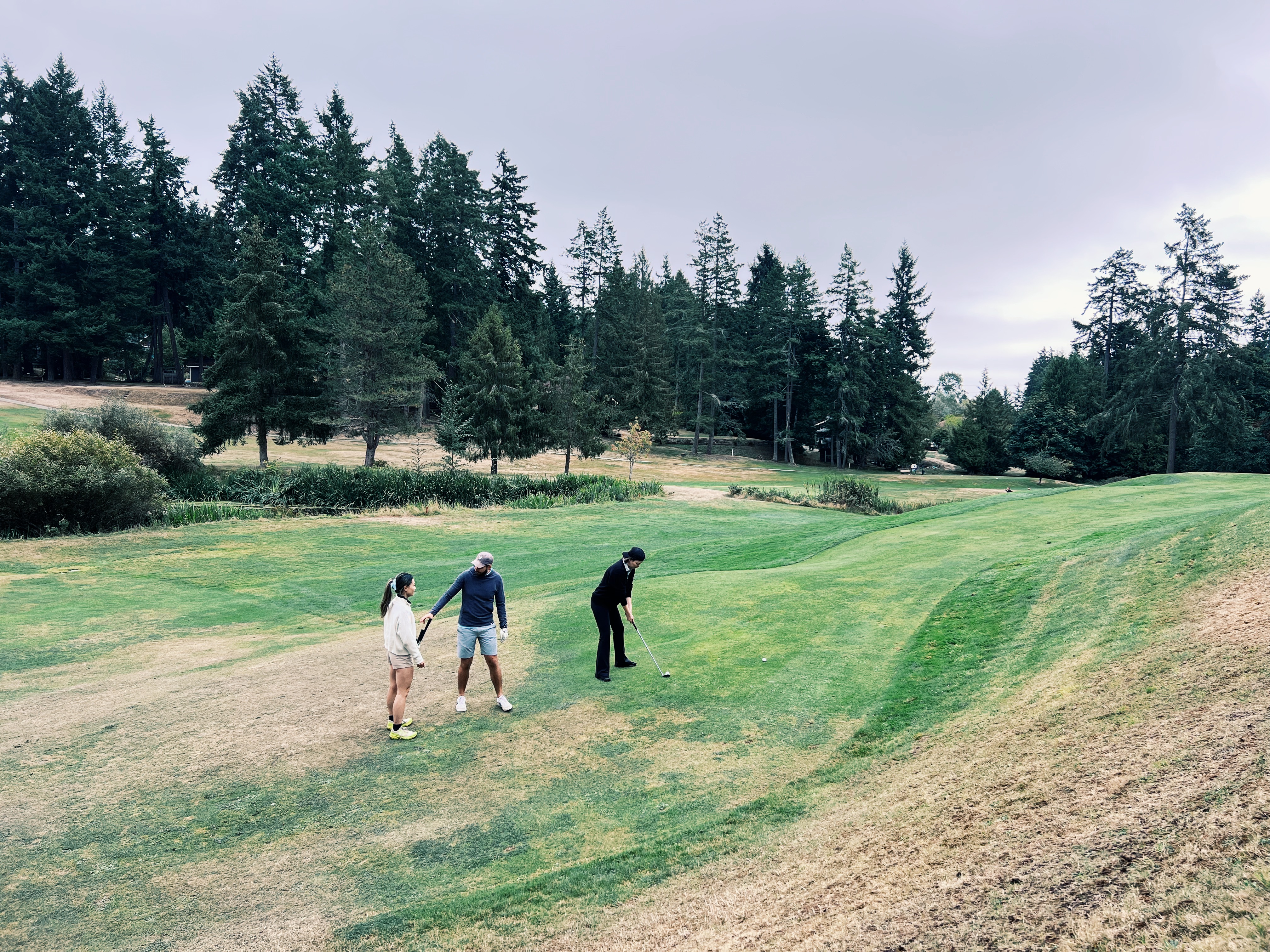 Learning opportunities everywhere! Liam and Cherrie teaching me golf.