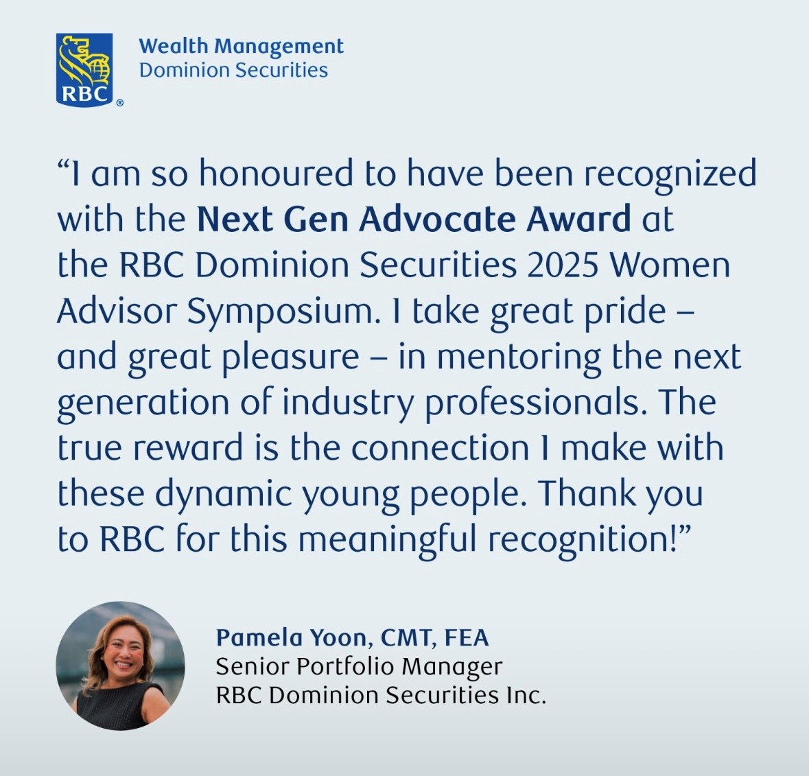 For more than a decade, she has collaborated with Simon Fraser University to regularly offering guidance on career development in the wealth management industry. In addition to her university involvement, Pam is also hands-on in mentoring the summer interns with RBC Dominion Securities. She continuously offers her time and practical guidance to help emerging professionals build confidence and develop the skills to grow.